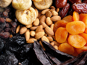 Mélanges apéritifs et fruits secs.